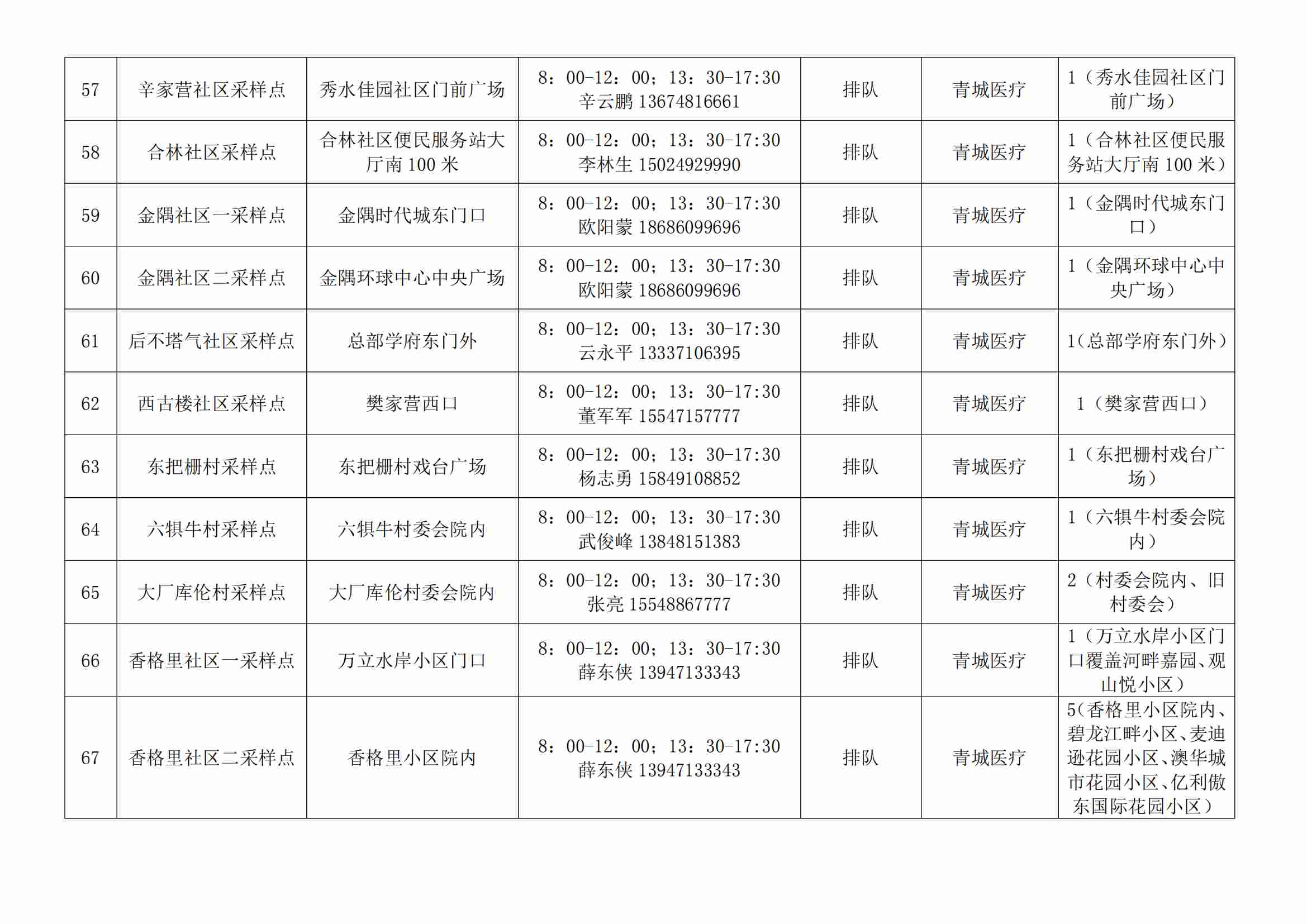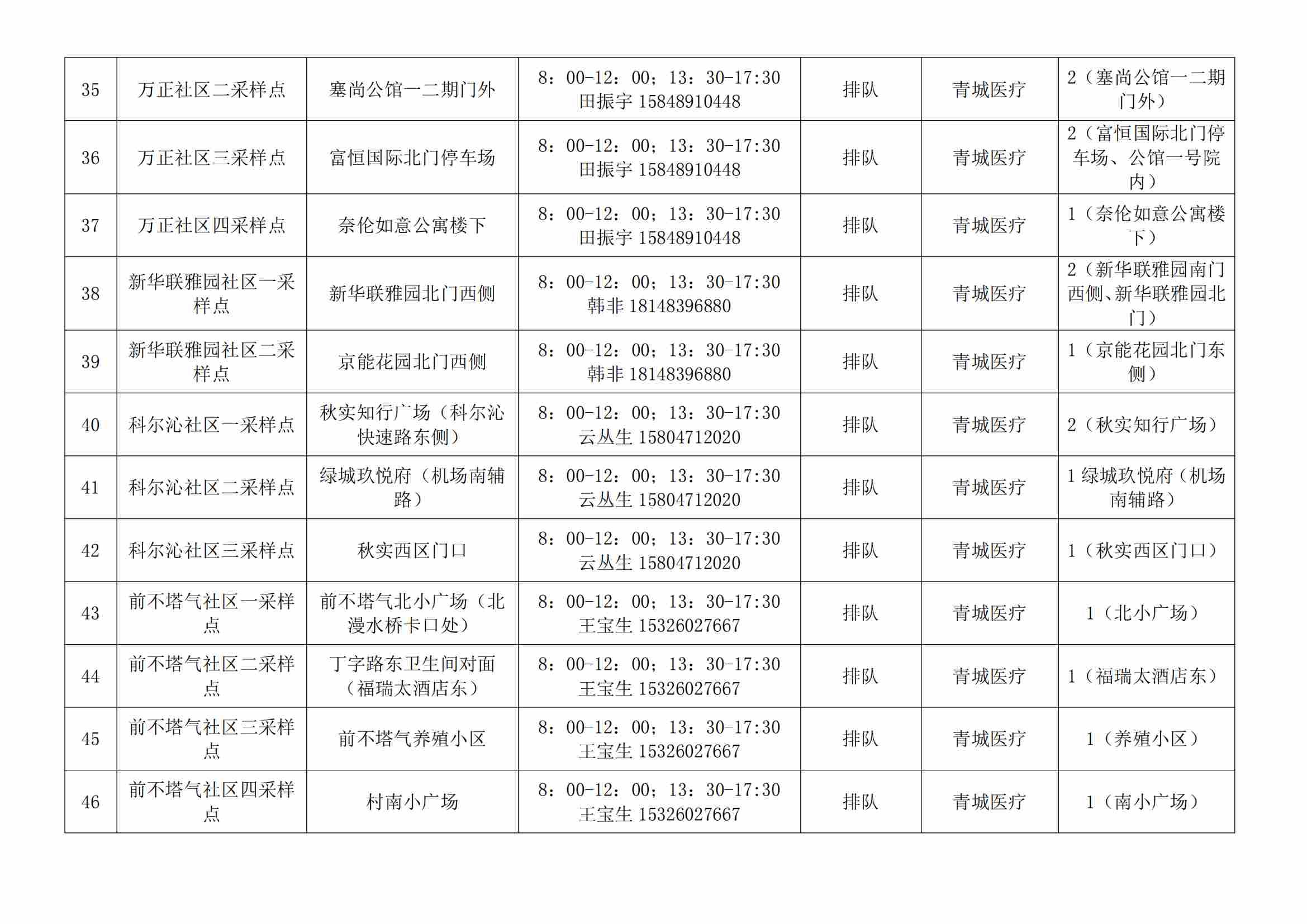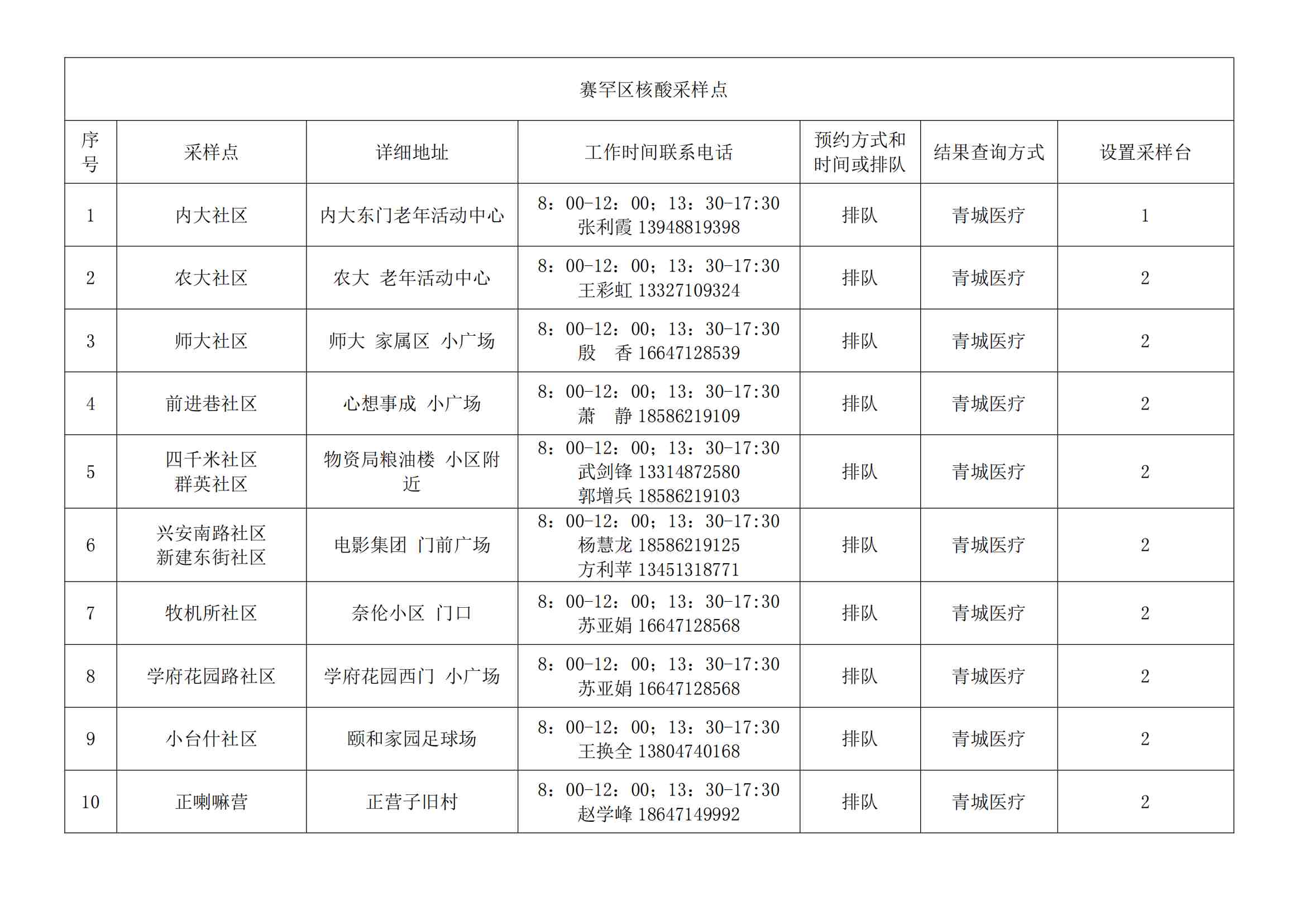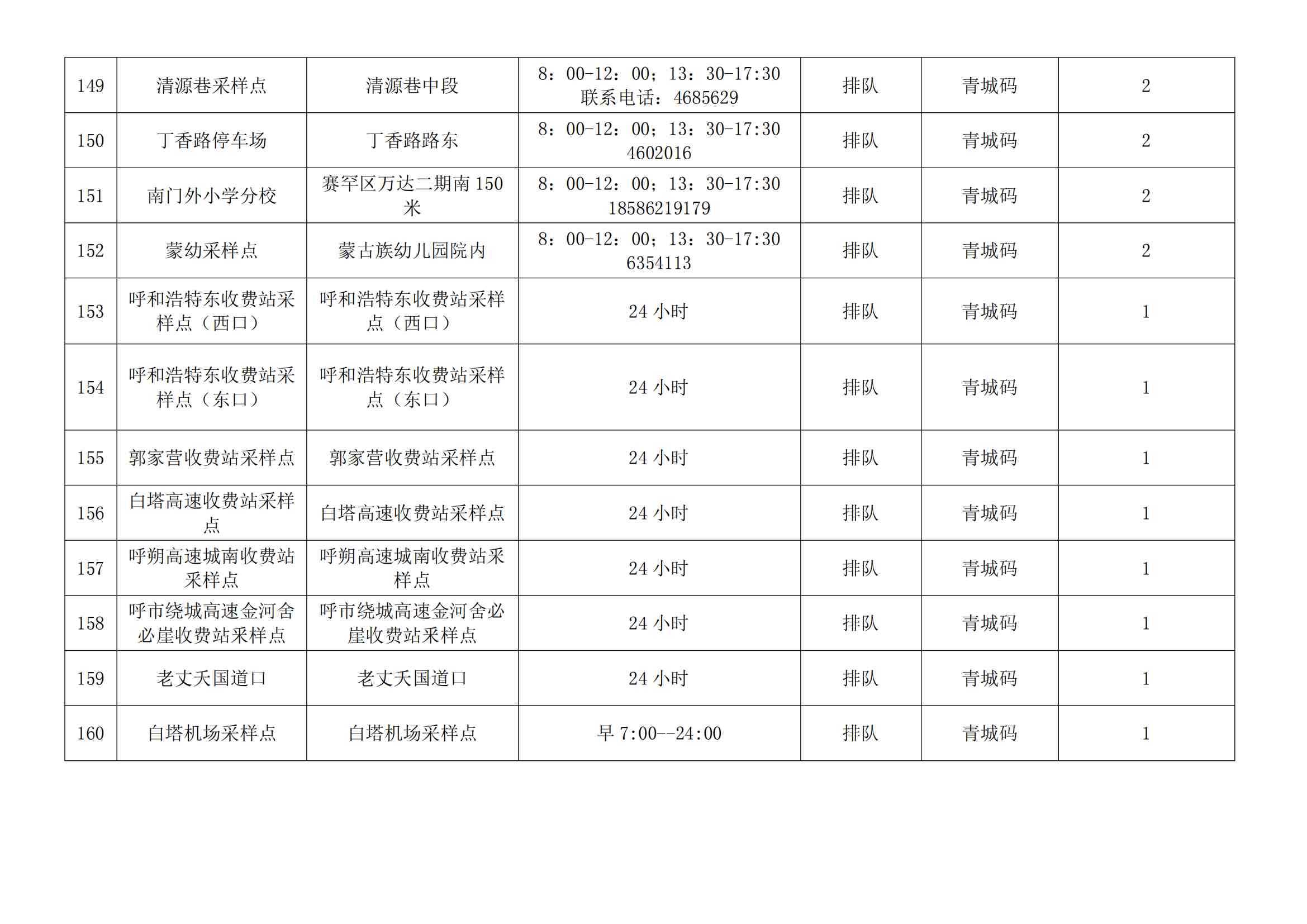 根據(jù)全市核酸檢測政策的調整,為滿足市民就醫(yī)、出行、工作等核酸檢測需求,賽罕區(qū)開放160個便民核酸采樣點(詳見附表),廣大市民可就近選擇,核酸結果從青城碼查詢。