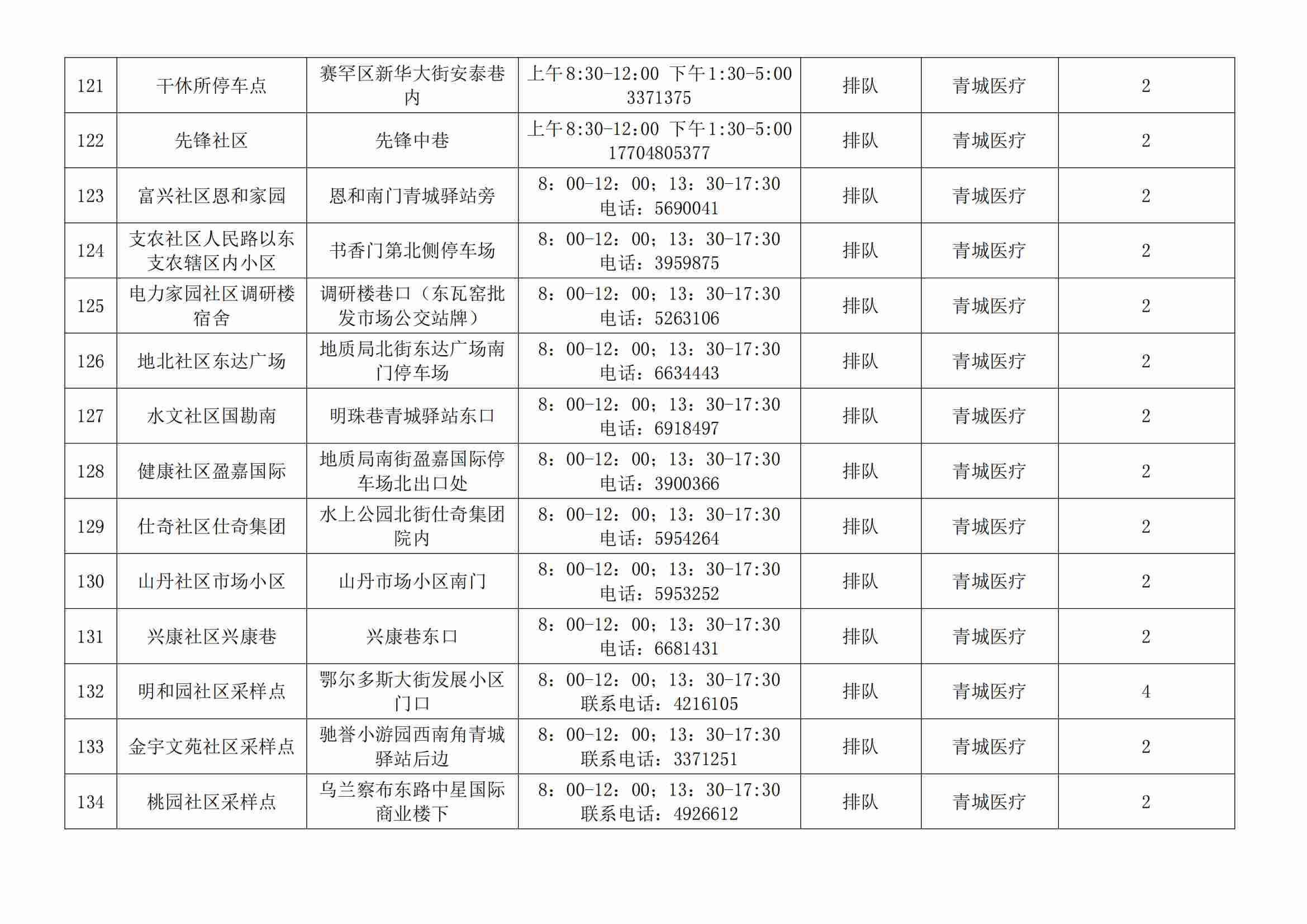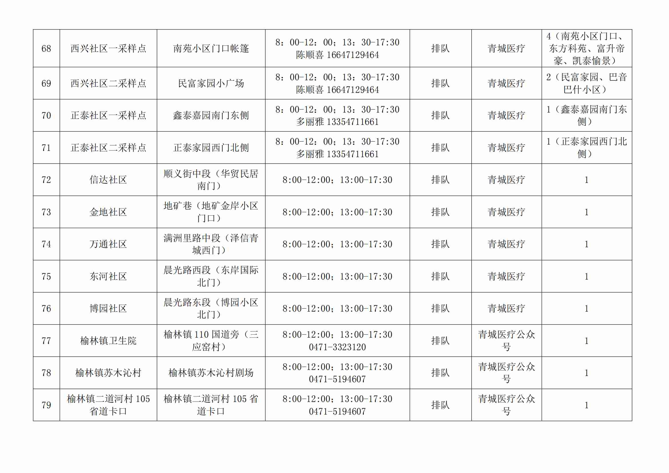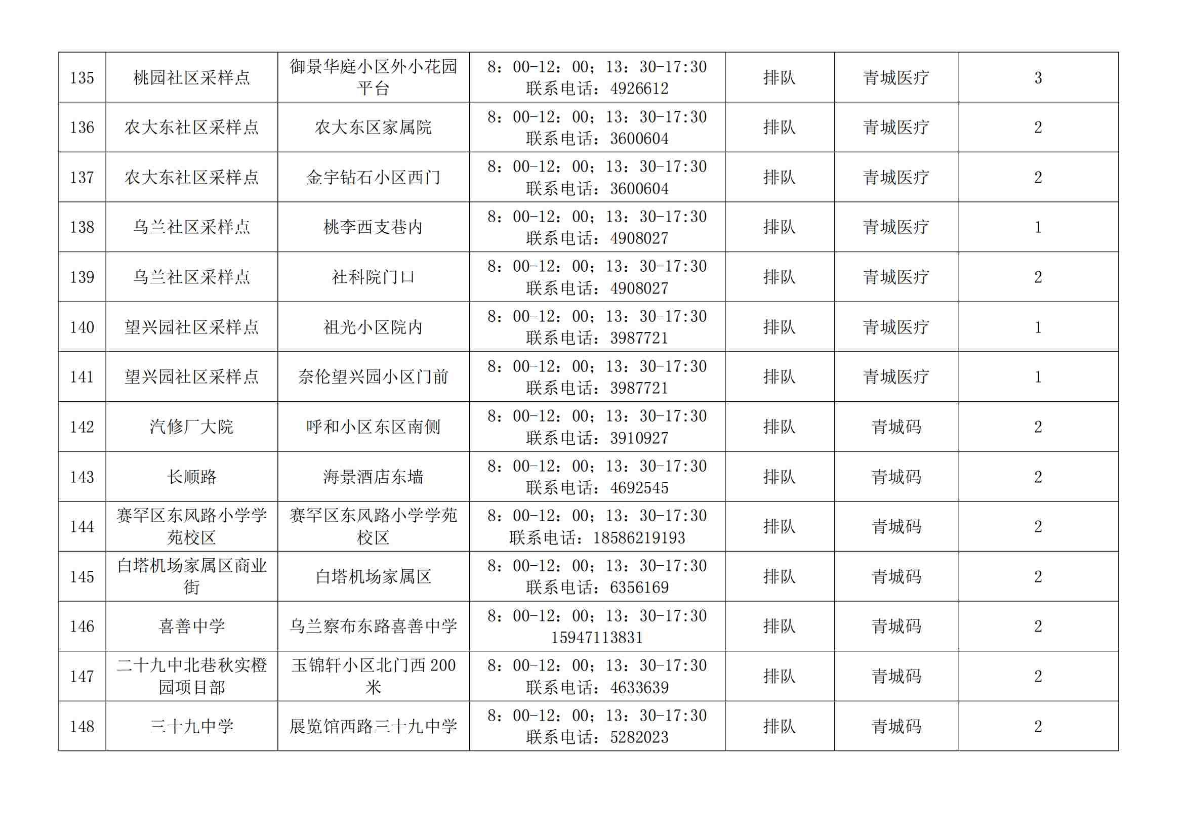 賽罕區(qū)常態(tài)化核酸檢測便民采樣點公示