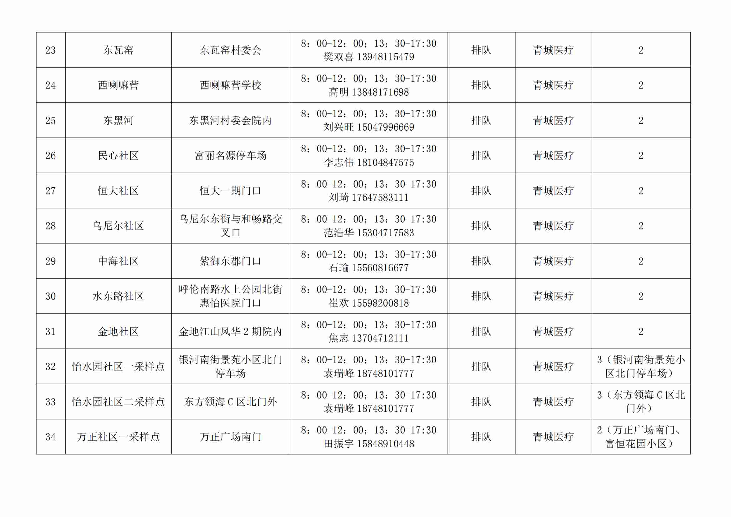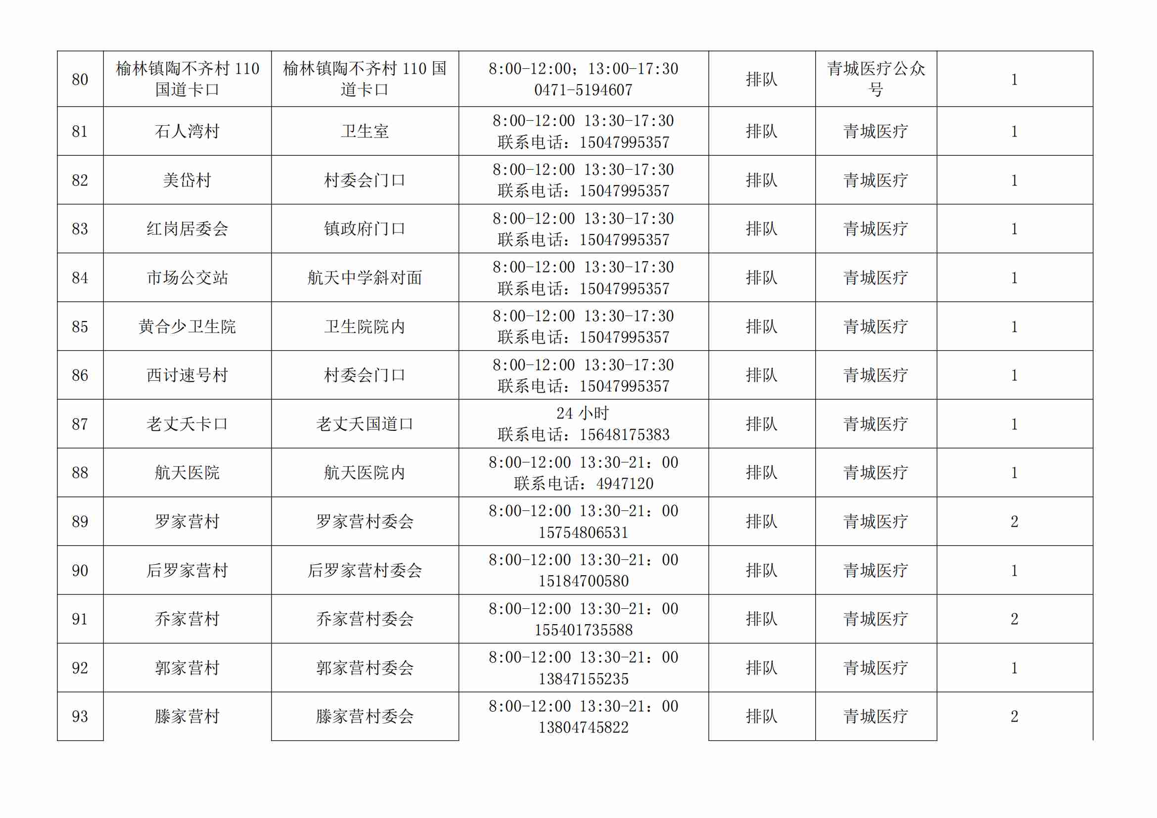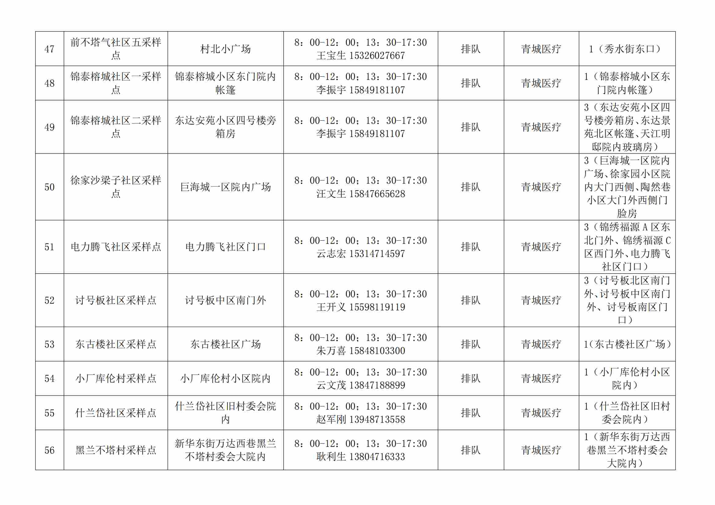 賽罕區(qū)常態(tài)化核酸檢測便民采樣點公示
