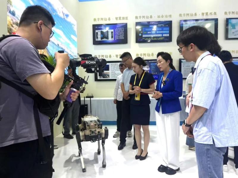 在“數(shù)智政務(wù)”體驗區(qū),參展嘉賓深入了解阿拉善盟依托一體化政務(wù)服務(wù)平臺實(shí)現(xiàn)政務(wù)事項“一網(wǎng)通辦”“掌上辦”的生動案例。實(shí)物陳列區(qū),全球首例駱駝瘤胃膠囊、“時光”雕刻機(jī)、“電子狗”“電子狼”等阿拉善盟應(yīng)用于各領(lǐng)域的諸多高科技產(chǎn)品一一亮相。在互動體驗區(qū),阿拉善禮物深受歡迎,“數(shù)字身份證”為阿拉善禮物追根溯源。同時,“阿拉善特色產(chǎn)業(yè)”平臺、“一億棵梭梭”互動系統(tǒng)、VR數(shù)游阿拉善等,充分體現(xiàn)了數(shù)字技術(shù)在特色產(chǎn)業(yè)、生態(tài)、文旅、政務(wù)領(lǐng)域的落地成效。