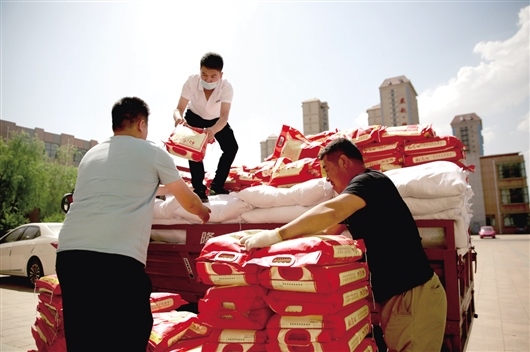 聽說這批物資是捐贈給學(xué)校的,拉載物資的工人以及尚宇的朋友、家人紛紛前來幫助搬運,“我們帶著120袋優(yōu)質(zhì)大米、200袋面、100箱有機蔬菜,慰問高新一中辛勤的老師,這是尚宇以個人的名義捐贈的。老師們無微不至地為學(xué)生付出,在這個特殊時期,希望通過慰問來表達對老師們的敬意?!北簧杏畹男袨楦袆?,前來幫助搬運物資的李聰亮介紹。