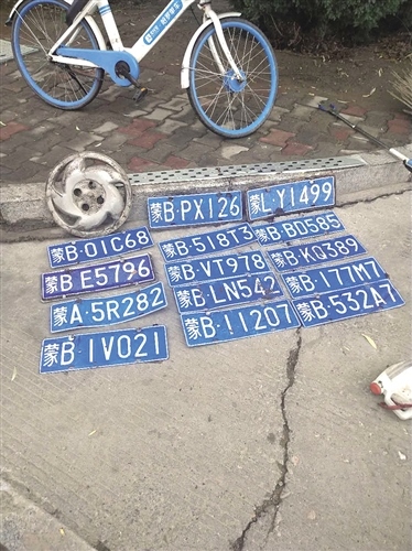 7月11日、12日的特大暴雨,造成包頭市區(qū)部分路段積水,一些車輛的車牌在行駛過(guò)程中被急流沖走。包頭市青山區(qū)城市管理綜合執(zhí)法局烏素圖環(huán)衛(wèi)所的環(huán)衛(wèi)工人們?cè)谇宄e水路段的淤泥時(shí),撿到了不少車牌。