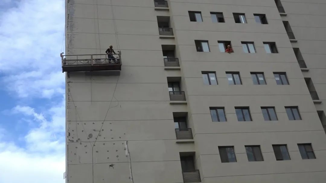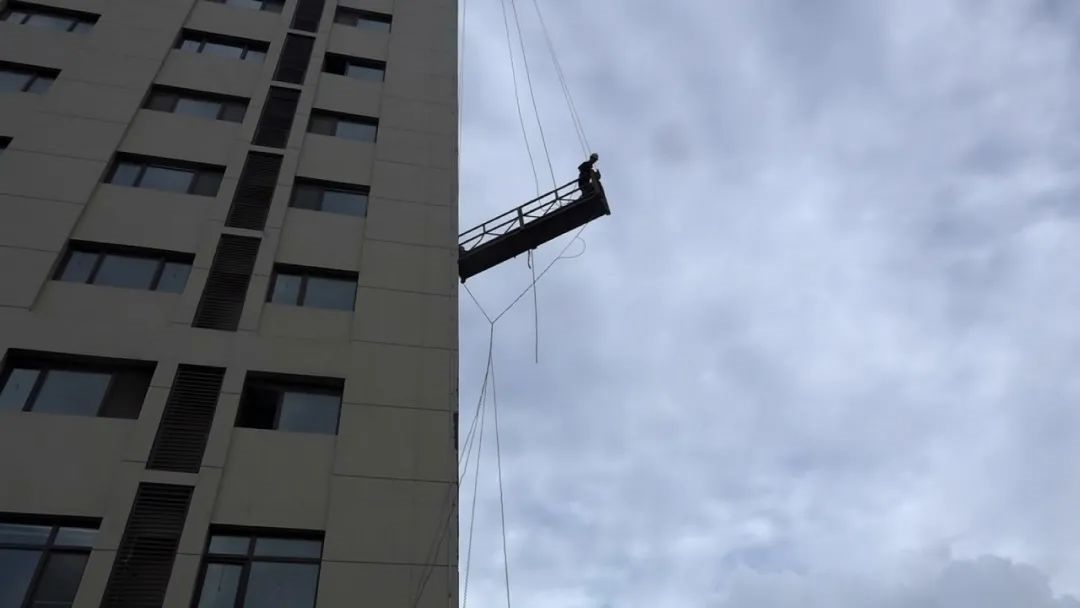 9月1日17時(shí)許,包頭市各地出現(xiàn)冰雹、雷雨大風(fēng)等強(qiáng)對(duì)流天氣,冰雹平均直徑5毫米,最大直徑10毫米。在這樣惡劣的天氣條件下,一名粉刷工人被困在包頭市富力城公寓8樓外的吊籃中,情況危急。