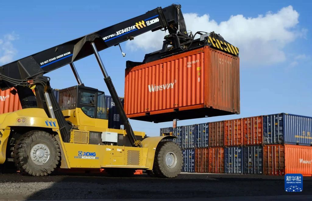 包頭市九原區(qū)“數字陸港”車在整理“甩箱”。新華社記者賈立君 攝