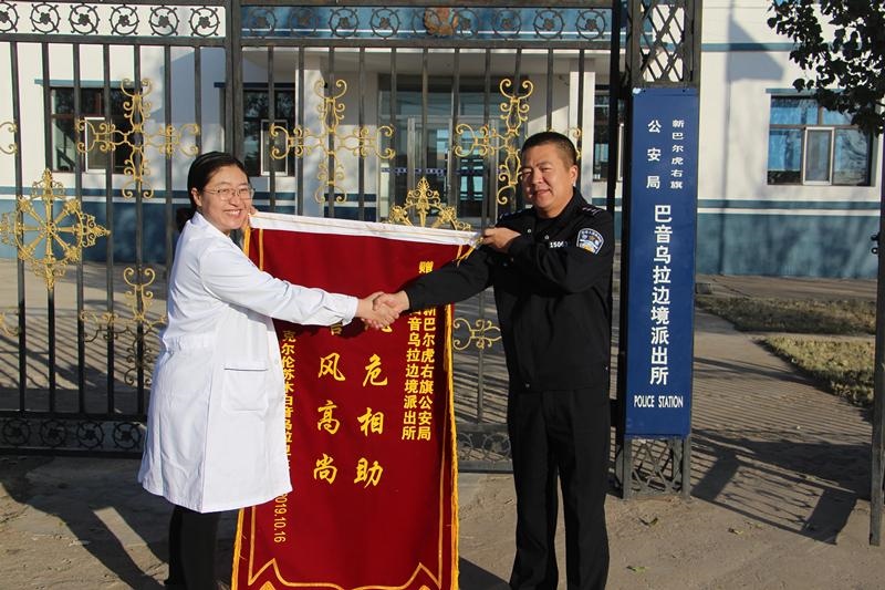 近日,白音烏拉衛(wèi)生院李院長(zhǎng)到巴音烏拉邊境派出所,將一面印有“風(fēng)危相助、警風(fēng)高尚”的錦旗送到民警手中,感謝派出所民警長(zhǎng)期以來對(duì)駐地衛(wèi)生院和居民的幫助和關(guān)愛。