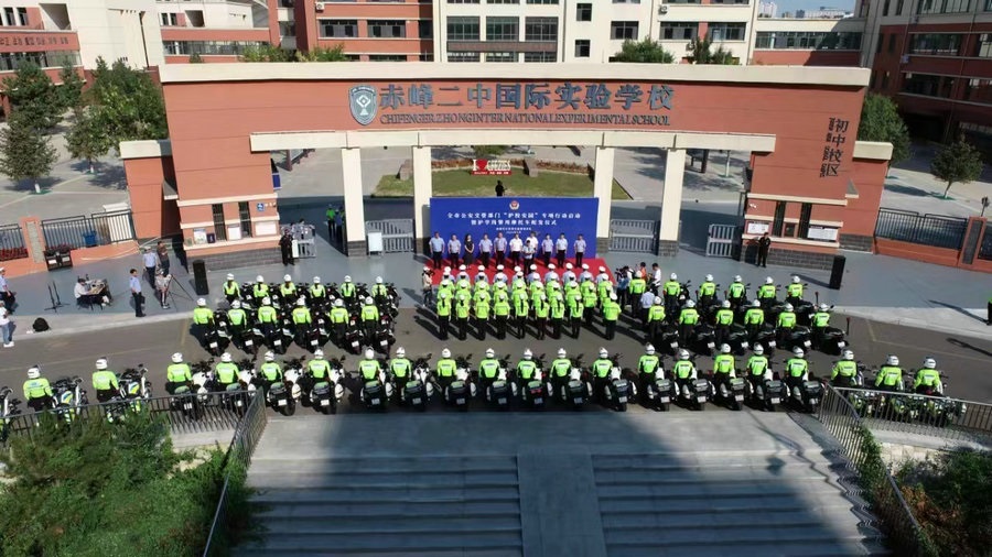 北疆新聞呼和浩特9約3日電(記者 楊凈毓)8月30日,赤峰市公安局交管支隊(duì)在赤峰二中國際實(shí)驗(yàn)學(xué)校門前,舉行全市公安交管部門“護(hù)校安園”專項(xiàng)行動(dòng)啟動(dòng)暨護(hù)學(xué)崗警用摩托車配發(fā)儀式。