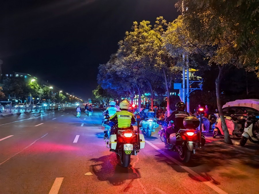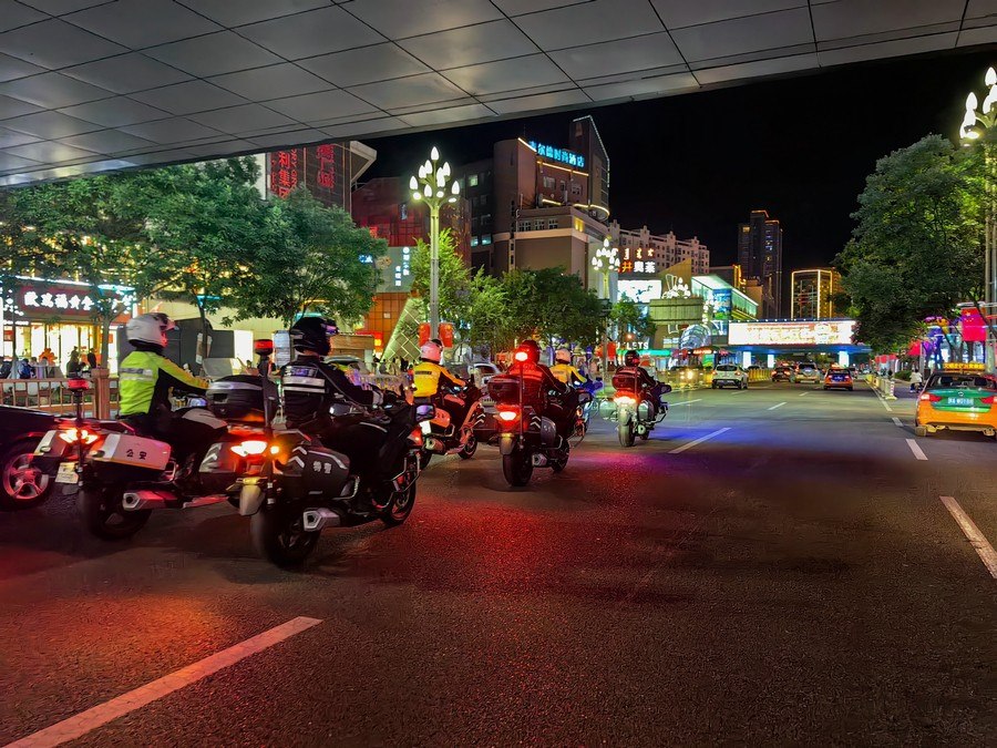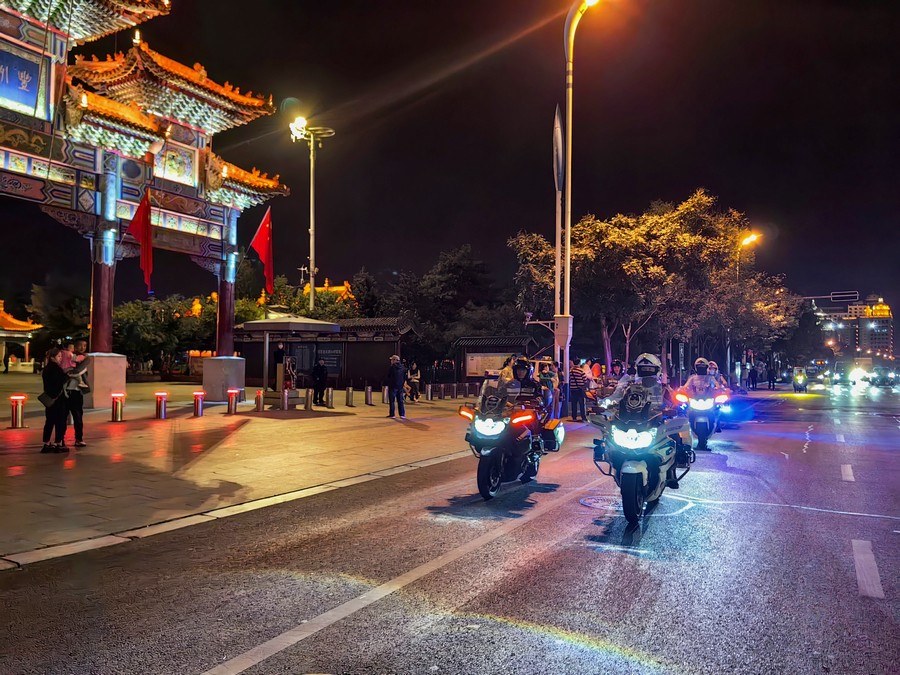 中秋、國慶兩節(jié)期間,呼和浩特市公安局反恐怖和特巡警支隊(duì)?wèi)?zhàn)鷹突擊隊(duì)與交警支隊(duì)停放管理大隊(duì)鐵騎中隊(duì),聯(lián)合開展巡邏防控工作,并組成了一支騎警處突機(jī)動隊(duì),成了呼和浩特大街小巷一道亮麗的風(fēng)景線。圖為中秋節(jié)之夜,這支機(jī)動隊(duì)開展聯(lián)合巡邏,守護(hù)青城百姓平安過節(jié)。 王鑫 攝影報(bào)道