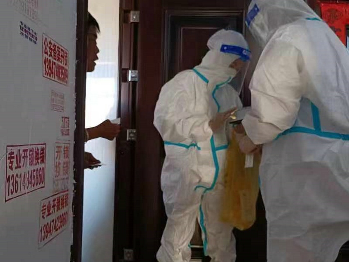 全系統(tǒng)黨員干部、教職工以最快的速度下沉到包聯(lián)小區(qū),忙碌在戰(zhàn)“疫”前線,開展小區(qū)值守工作。共包聯(lián)小區(qū)59個,其中高風(fēng)險區(qū)6個,共投入工作人員1573名,其中消殺人員36名、信息員237名、小區(qū)值守人員1300名。所有工作人員嚴格執(zhí)行24小時值班制度,對進出小區(qū)人員進行掃碼登記、體溫測量等工作,嚴格做到“外防輸入,內(nèi)防擴散”。