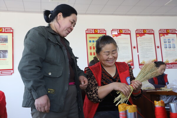 得知草編效益越來越好,李鳳華越發(fā)覺得非遺傳承不能“單打獨斗”,便在2021年成立了水泉鎮(zhèn)巧手工藝坊,幫助周邊百姓特別是弱勢群體掌握一技之長。