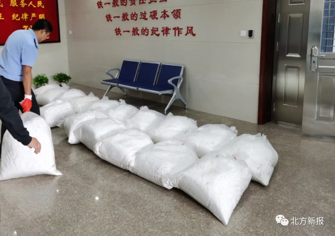 民警一路追蹤發(fā)現(xiàn),莊某駕駛的車輛未在山西省停留太久,又連夜返回包頭。有了前方的情報,專案組于9月13日凌晨5時,分為5個小組共30余警力,在黃河大橋收費站設(shè)卡進行堵截。民警提前封閉收費站車道,只留一條通過,因前后均有車輛,大大降低了嫌疑人駕車沖卡風(fēng)險。清晨通行車輛本就不多,此舉并未引起嫌疑人警覺。當(dāng)嫌疑車輛進入收費站的閘道時,潛伏民警立即沖上去將車輛司機控制,高某還未來得及下車逃跑,母子倆雙雙落網(wǎng)。專案組民警在莊某駕駛的車輛后備箱內(nèi)現(xiàn)場查獲毒品咖啡因30編織袋共750公斤。