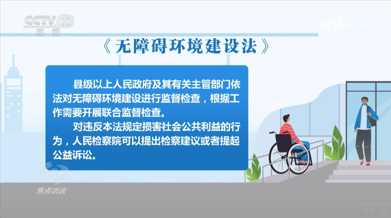 有了設施建設標準、劃分了管理維護責任,這還不夠,沒有監(jiān)督,無障礙環(huán)境建設工作很難持久。在《無障礙環(huán)境建設法》中,還對“如何保障‘急難愁盼’問題得到解決”進行了規(guī)定。比如縣級以上人民政府及其有關主管部門依法對無障礙環(huán)境建設進行監(jiān)督檢查,根據(jù)工作需要開展聯(lián)合監(jiān)督檢查。對違反《無障礙環(huán)境建設法》規(guī)定損害社會公共利益的行為,人民檢察院可以提出檢察建議或者提起公益訴訟。