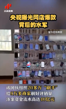 ·近日,央視曝光一“刷單控評”犯罪團(tuán)伙,組織20多萬“刷手”,給9萬多商家刷好評銷量,涉案資金流水高達(dá)40億元。目前,涉案30余名犯罪嫌疑人被刑事拘留。