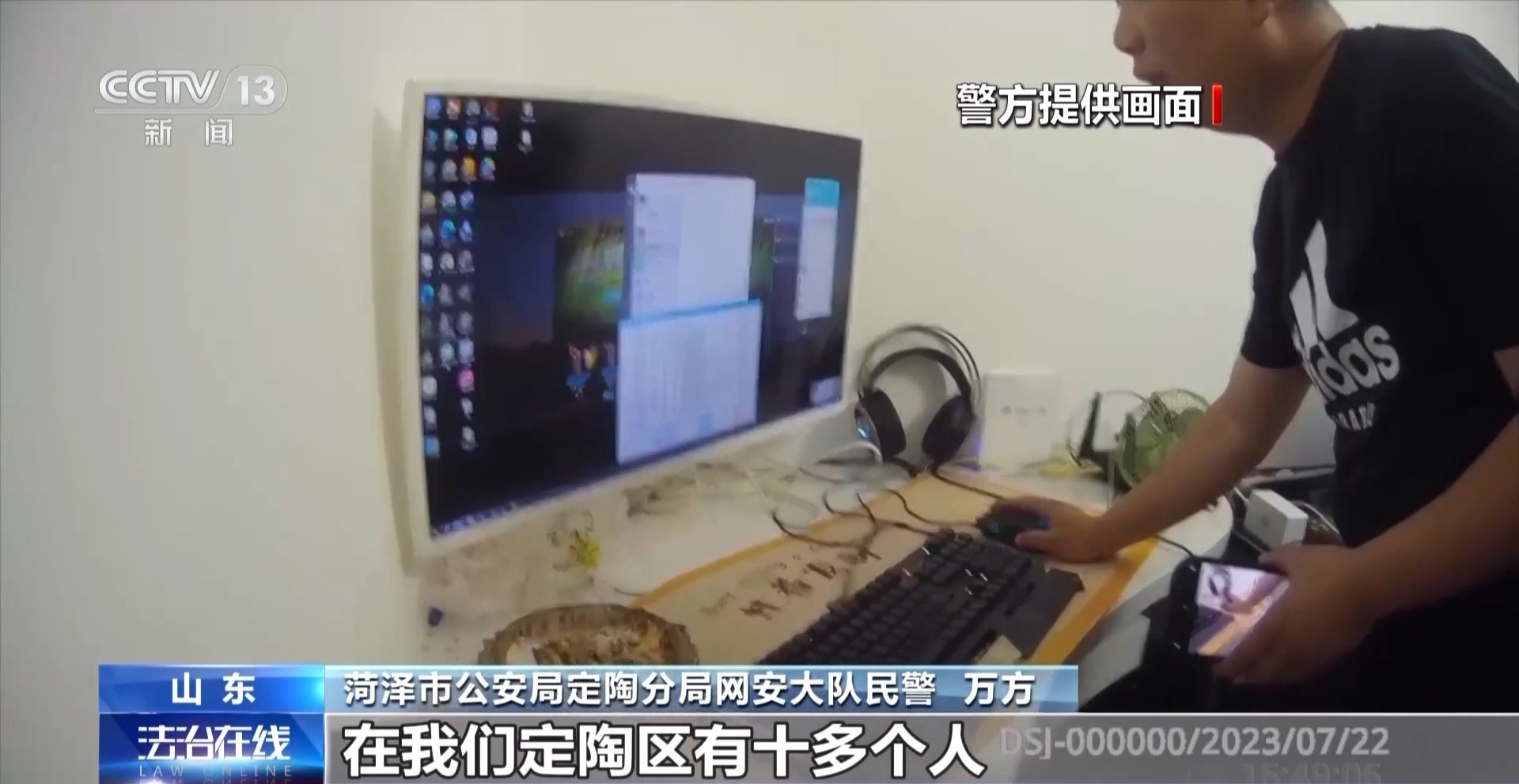菏澤市公安局定陶分局網(wǎng)安大隊民警 萬方:打開門之后,當(dāng)時非常吃驚,很多部手機(jī)同時在批量開著,還有很多充電器,批量充電的設(shè)備,他們在那里架設(shè)了一個工作室,放了三臺電腦。