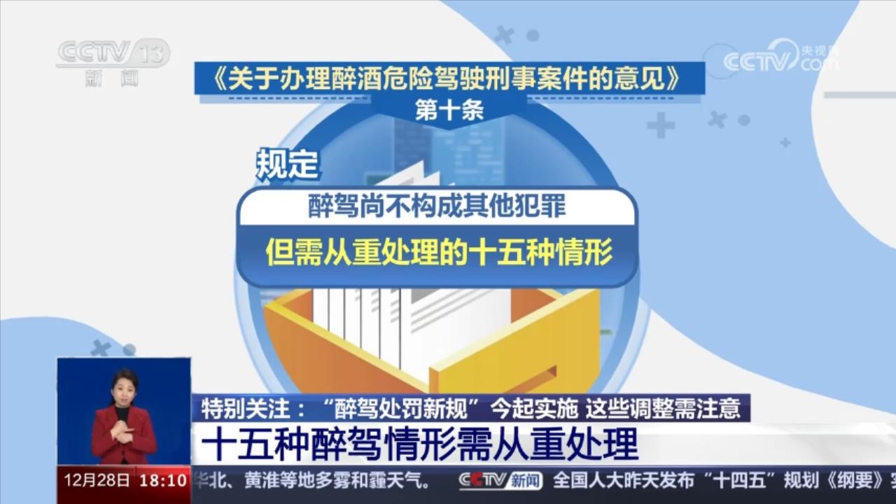 央視網(wǎng)消息:12月28日開始,《關于辦理醉酒危險駕駛刑事案件的意見》,俗稱“醉駕處罰新規(guī)”正式實施。此前,《意見》由最高人民法院、最高人民檢察院、公安部、司法部聯(lián)合發(fā)布。