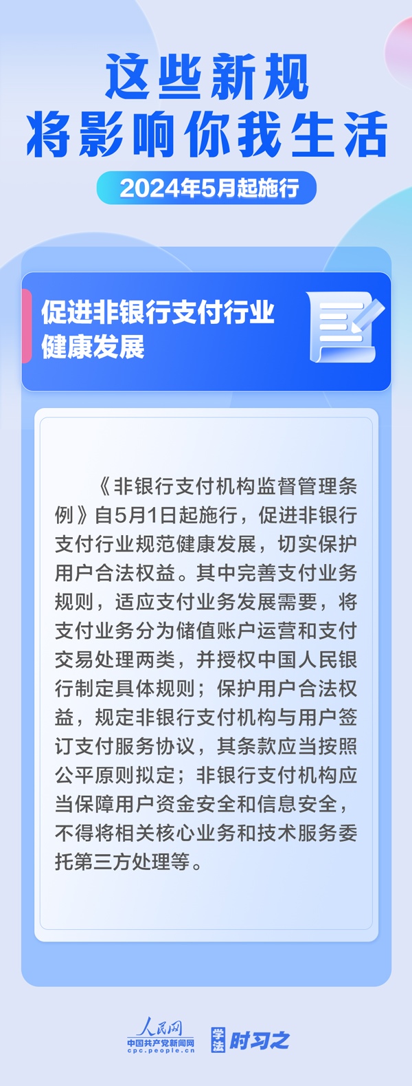 促進非銀行支付行業(yè)健康發(fā)展;首次對社會組織名稱進行統(tǒng)一規(guī)定;破除資格預審等招投標領(lǐng)域交易壁壘……5月起,這些新規(guī)施行,將影響你我生活。