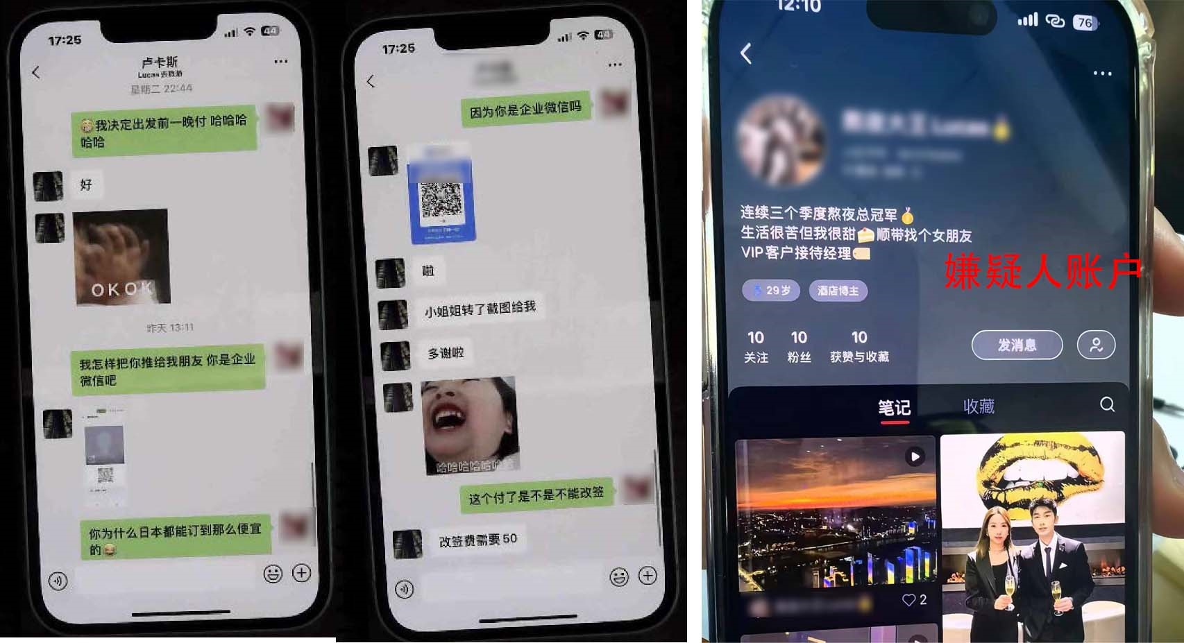 立案?jìng)刹槠陂g,民警將涉及“熬夜冠軍”所關(guān)聯(lián)的受害人信息進(jìn)行了全量梳理,發(fā)現(xiàn)僅2023年12月至2024年2月就有9名受害人遭其詐騙,累計(jì)涉案金額達(dá)7萬(wàn)余元。其中還不乏有受害人從嫌疑人處“代定”海外酒店,結(jié)果舉家飛往國(guó)外發(fā)現(xiàn)錯(cuò)過(guò)淡季訂房,而被迫承擔(dān)更高昂的房費(fèi)。