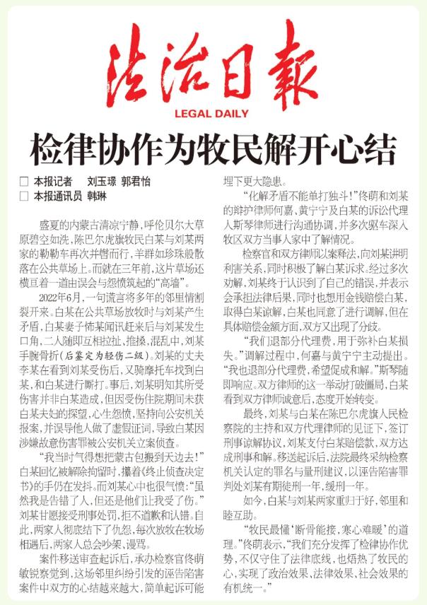 “牧民最懂‘?dāng)喙悄芙?,寒心難暖’的道理?!辟∶缺硎荆拔覀兂浞职l(fā)揮了檢律協(xié)作優(yōu)勢(shì),不僅守住了法律底線,也焐熱了牧民的心,實(shí)現(xiàn)了政治效果、法律效果、社會(huì)效果的有機(jī)統(tǒng)一?!保?span style="text-align: justify;">作者 劉玉璟 郭君怡 韓琳)