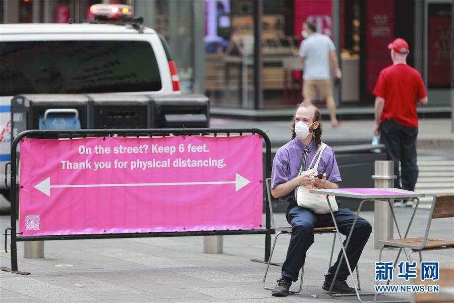 7月23日,在美國(guó)紐約時(shí)報(bào)廣場(chǎng),人們從保持社交距離的提示牌旁走過。美國(guó)約翰斯·霍普金斯大學(xué)23日發(fā)布的新冠疫情最新統(tǒng)計(jì)數(shù)據(jù)顯示,美國(guó)累計(jì)確診病例超過400萬(wàn)例。數(shù)據(jù)顯示,截至美國(guó)東部時(shí)間23日15時(shí)34分(北京時(shí)間24日3時(shí)34分),美國(guó)累計(jì)確診病例4007859例,累計(jì)死亡病例143846例。新華社記者王迎攝