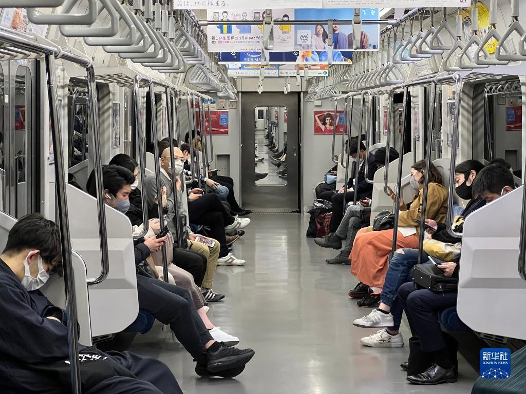 3月16日,日本東京JR橫須賀線因地震停車,乘客被困車廂中(手機攝影)。新華社發(fā)(孫佳林攝)