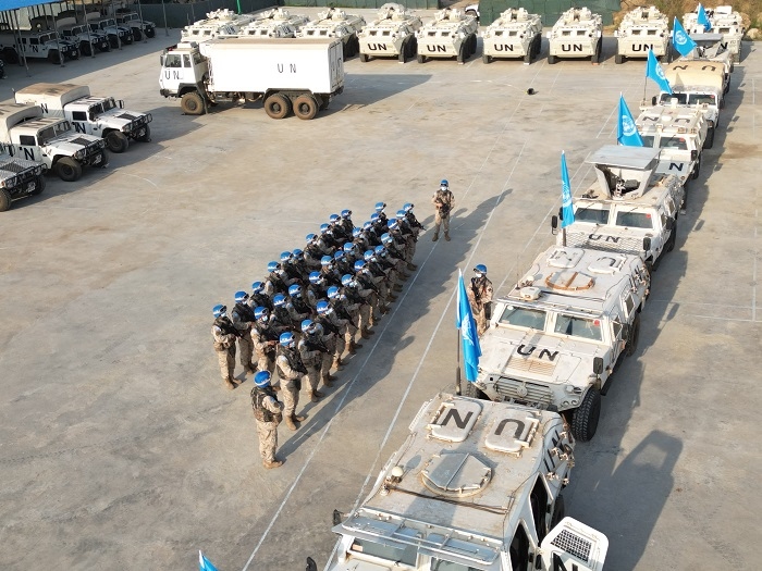 2022年12月,“劉老莊連”隨中國第九批赴南蘇丹(朱巴)維和步兵營奔赴維和戰(zhàn)場,重點(diǎn)擔(dān)負(fù)警戒巡邏、武裝護(hù)衛(wèi)、隔離沖突等維和任務(wù)。截至目前,“劉老莊連”累計(jì)行程1500余公里,高標(biāo)準(zhǔn)完成了各項(xiàng)授權(quán)任務(wù),受到聯(lián)南蘇團(tuán)各級(jí)高度贊揚(yáng)。這也是英雄的“劉老莊連”戰(zhàn)旗第一次飄揚(yáng)在非洲大地。
