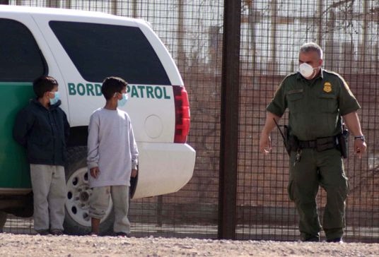這張2021年3月27日在墨西哥華雷斯拍攝的照片顯示,兩名來自危地馬拉的移民兒童在跨越美墨邊境的里奧格蘭德河后,等待接受美國邊境巡邏隊人員的處理。新華社發(fā)(戴維·佩納多攝)