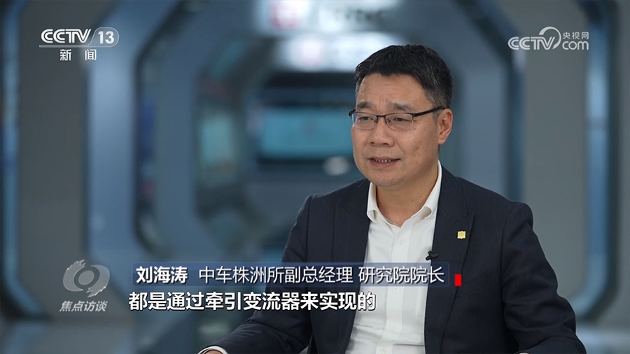 中車株洲所副總經(jīng)理、研究院院長劉海濤:“在高鐵車窗上擺一枚硬幣,這枚硬幣在高鐵300公里時速運行工況下依然非常平穩(wěn)。過程中的加減速以及恒速控制,都是通過牽引變流器實現(xiàn)的?!?/p>