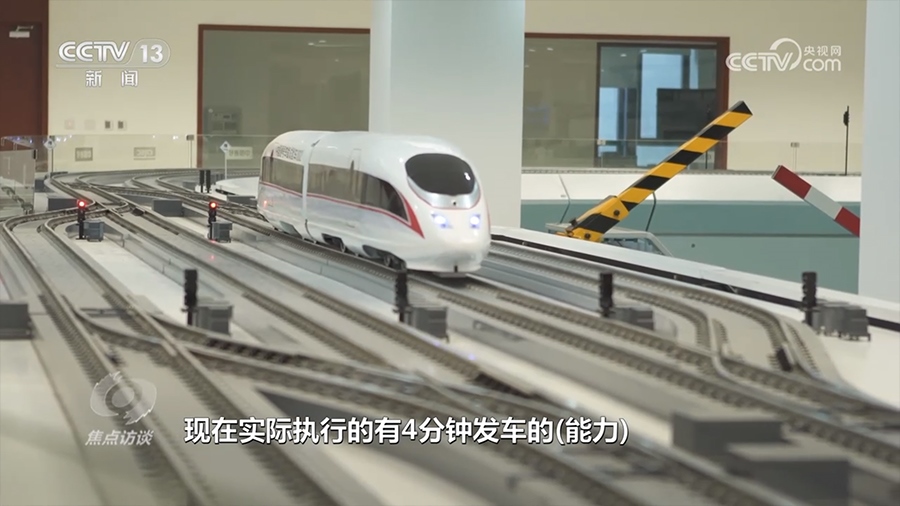 中國通號研究設(shè)計院集團副總工程師江明:“我們要保證所有的車在一條線路上能夠安全,同時又比較密集地運行。我們可以實時知道現(xiàn)在車所在的位置,同時還能知道車現(xiàn)在的速度。經(jīng)過這么多年的努力,現(xiàn)在實際執(zhí)行的有4分鐘發(fā)車的能力?!?/p>