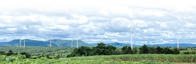 在泰國(guó)猜也蓬府,中國(guó)企業(yè)提供的風(fēng)力發(fā)電機(jī)正在運(yùn)行。 新華社記者 宋 宇攝