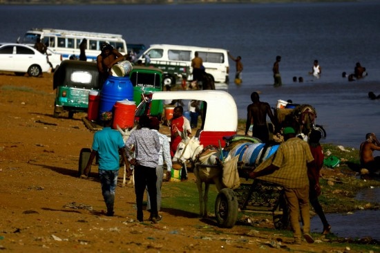 4月17日,由于武裝沖突導(dǎo)致停水,蘇丹喀土穆市民到尼羅河打水。新華社發(fā)(穆罕默德·海德爾攝)