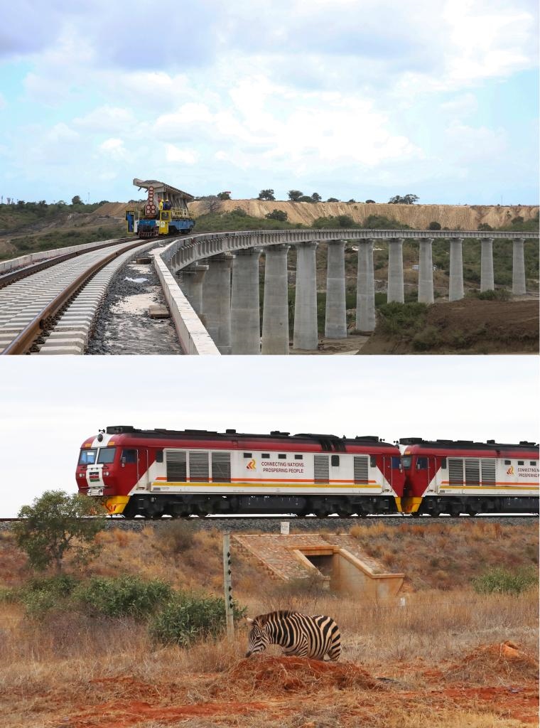 上圖:這是2016年9月1日在肯尼亞蒙巴薩拍攝的建設(shè)中的蒙內(nèi)鐵路蒙巴薩特大橋項目。新華社記者 潘思危 攝