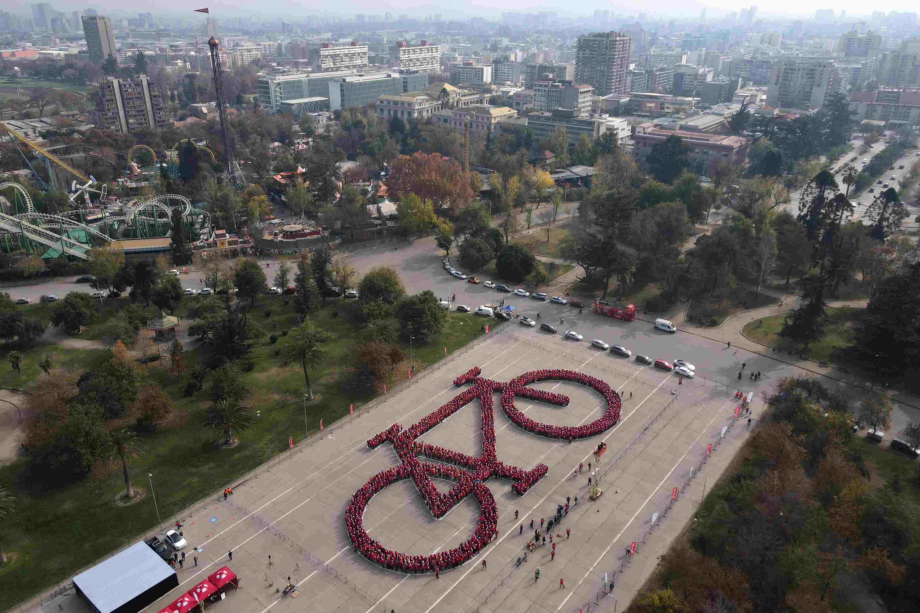 5月27日,智利圣地亞哥,數(shù)千人組成“最大”的自行車圖像,試圖打破吉尼斯世界紀(jì)錄。據(jù)悉,這項(xiàng)活動(dòng)是為了宣傳即將于10月20日至11月5日在當(dāng)?shù)嘏e行的2023年泛美運(yùn)動(dòng)會(huì), 視覺中國(guó)