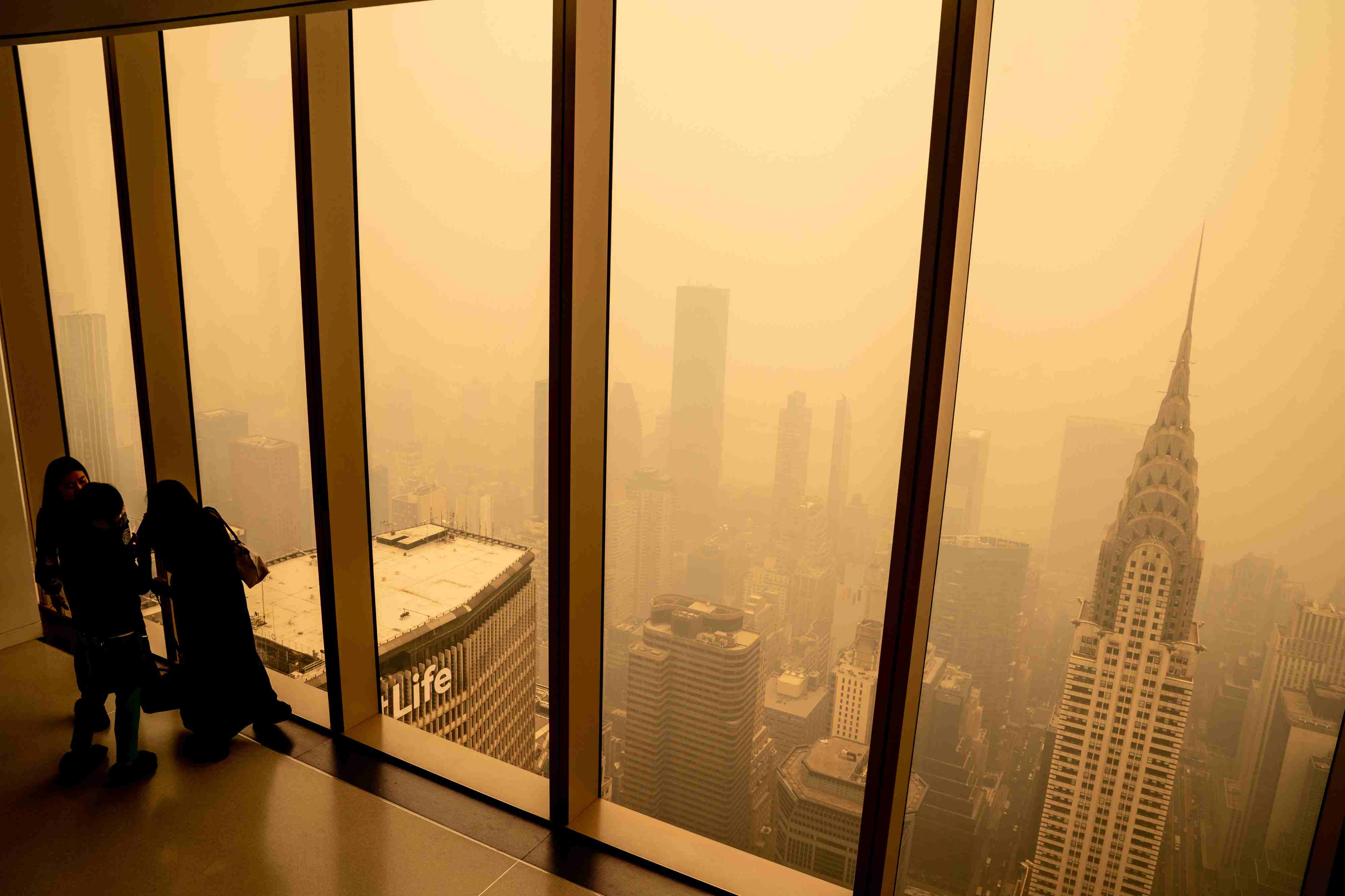 當?shù)貢r間2023年6月7日,受加拿大野火煙霧持續(xù)南下影響,美國紐約籠罩在“橙色霧霾”中。當天,紐約成為全球空氣污染最嚴重的城市。 視覺中國
