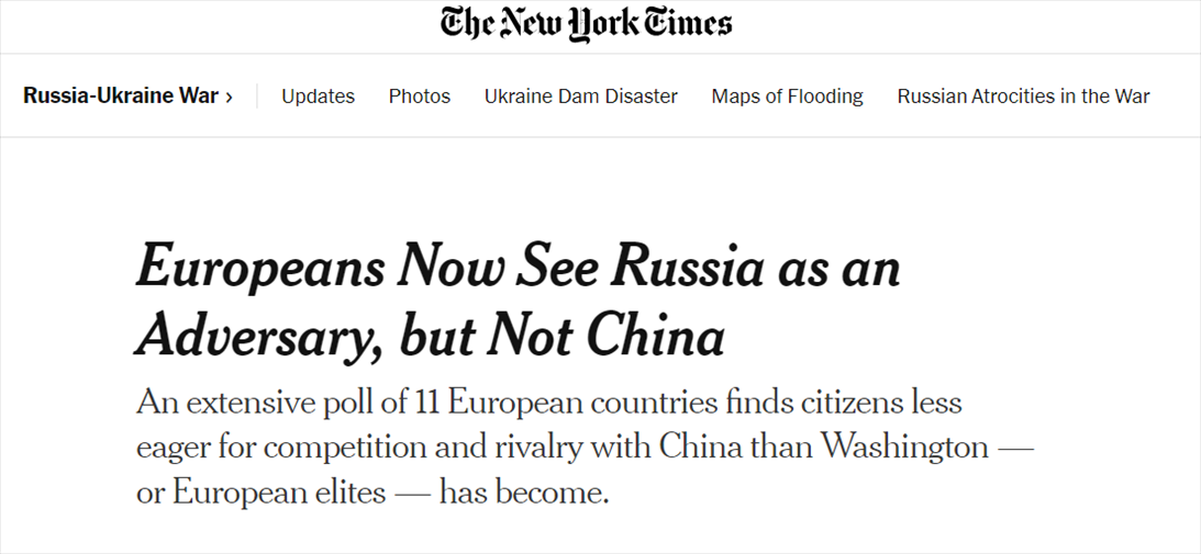 該委員會(huì)注意到,盡管歐盟委員會(huì)主席馮德萊恩建議歐洲各國(guó)與中國(guó)“去風(fēng)險(xiǎn)”而不是“脫鉤”來緩和緊張關(guān)系,但該報(bào)告顯示,歐洲公眾并不認(rèn)為需要遠(yuǎn)離北京。
