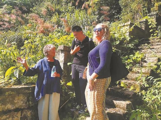 蒲天壽的后人蒲光珠(左一)和凱茜(右一)在舊居遺址。