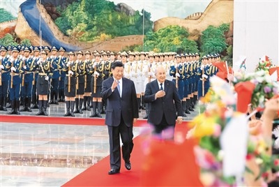 習近平指出,今年是中阿建交65周年。65年前,反對帝國主義和殖民主義、爭取民族獨立解放的共同事業(yè)使我們兩國走到一起。65年來,中國和阿爾及利亞始終患難與共、守望相助,相互理解、相互支持,是追求共同發(fā)展和民族振興道路上的真誠朋友、天然伙伴。中方正在以中國式現(xiàn)代化全面推進中華民族偉大復興,阿方正在著力推進建設“新阿爾及利亞”。中方愿同阿方一道努力,發(fā)揚光大傳統(tǒng)友誼,推動中阿全面戰(zhàn)略伙伴關系取得更大發(fā)展。