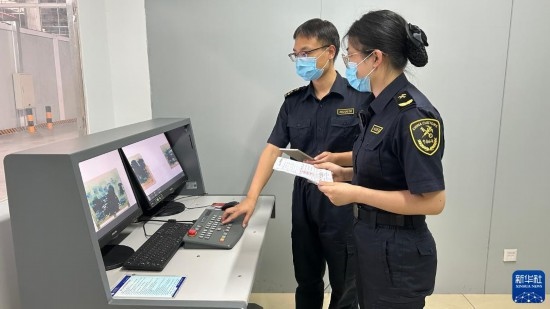 8月2日,中國鄭州機(jī)場海關(guān)關(guān)員用X光機(jī)對進(jìn)口貨物開展非侵入式查驗(yàn)。新華社發(fā)(鄭州機(jī)場海關(guān)供圖)