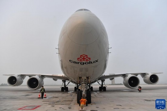 8月1日,在中國鄭州新鄭國際機(jī)場,一架盧森堡貨航貨機(jī)裝貨完畢準(zhǔn)備起飛。新華社記者 李嘉南 攝