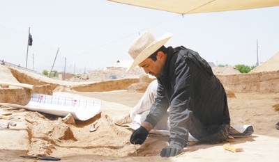 5月,比龍在位于烏茲別克斯坦南部城市拜松的拉巴特遺址進(jìn)行考古挖掘。 孫和筱攝