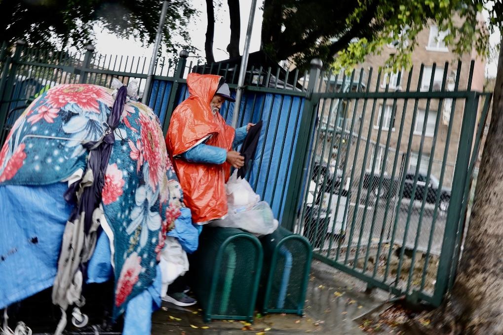 這是2023年1月10日在美國(guó)洛杉磯市中心街道上拍攝的無(wú)家可歸者。新華社發(fā)
