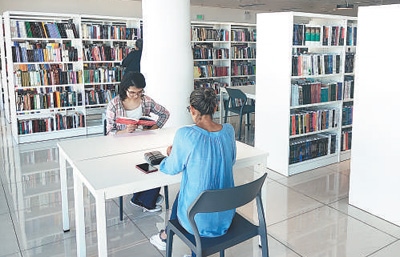 當(dāng)?shù)孛癖娫谥袊_爾瓦多國家圖書館內(nèi)閱讀。葉 鵬攝