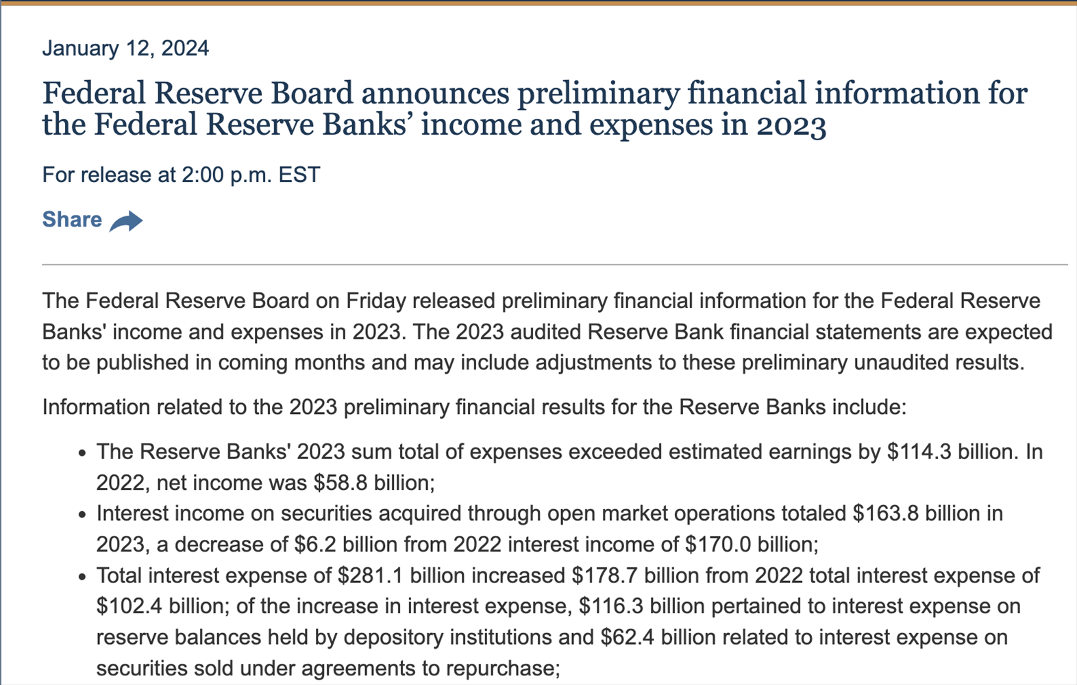 美聯(lián)儲發(fā)布的2023年收入和支出的初步財務信息。圖片來自美聯(lián)儲官網(wǎng)