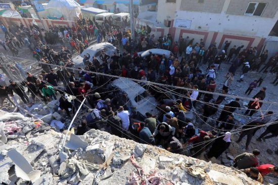 1月10日,在加沙地帶中部城市代爾拜拉赫,人們在以軍空襲后開展救援。新華社發(fā)(巴勒斯坦通訊社供圖)