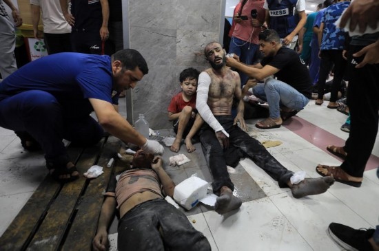 2023年10月23日,在加沙城一家醫(yī)院,醫(yī)護人員為傷者治療。新華社發(fā)(亞西爾·庫迪攝)