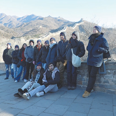 1月7日,弗吉尼亞大學代表團成員在八達嶺長城合影留念。本報記者 趙益普攝