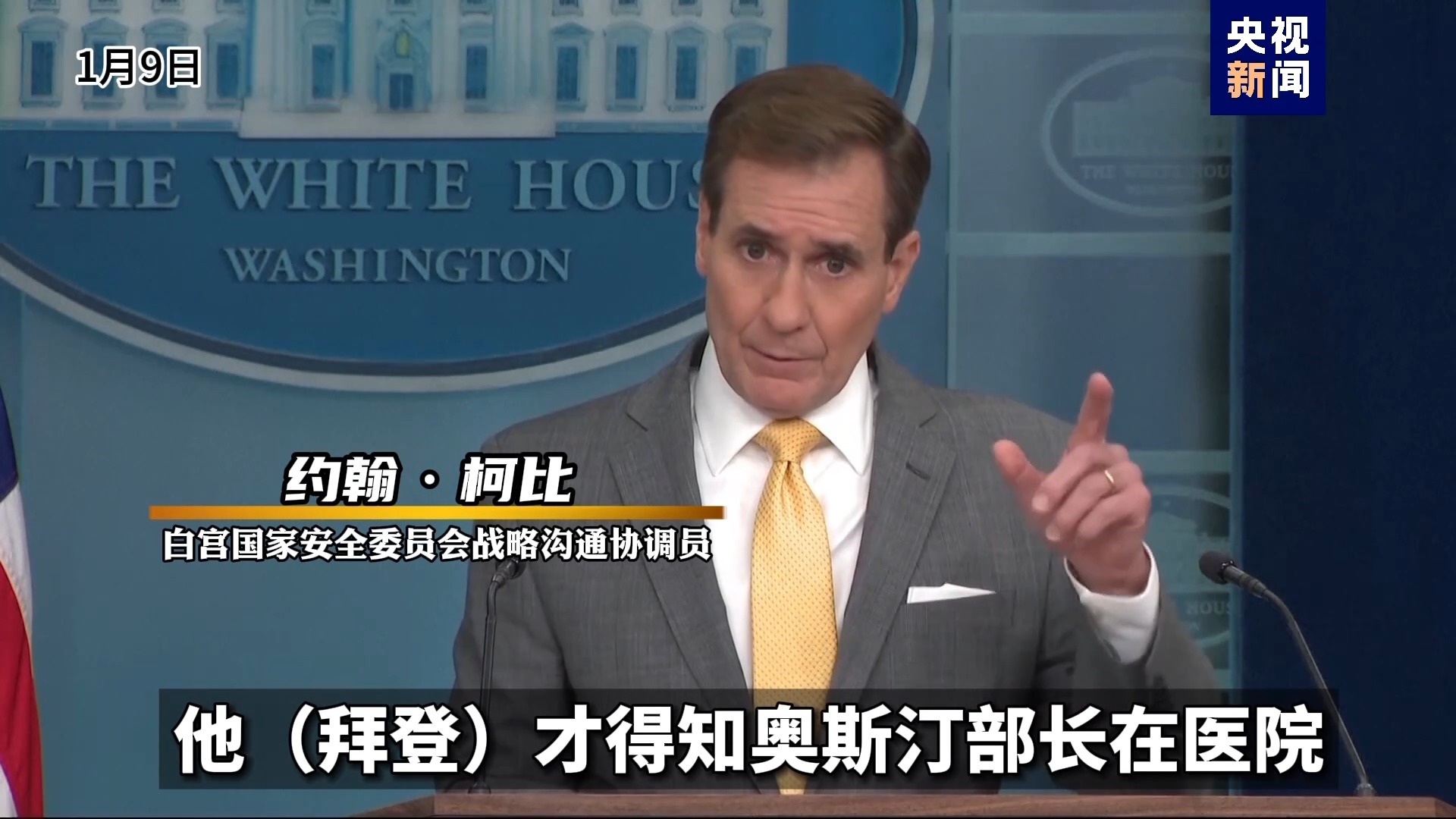 白宮國(guó)家安全委員會(huì)戰(zhàn)略溝通協(xié)調(diào)員 約翰·柯比:直到上周五(1月5日),他(拜登)才得知奧斯汀部長(zhǎng)在醫(yī)院。直到今天(1月9日)早上,他才被告知住院的原因是前列腺癌。