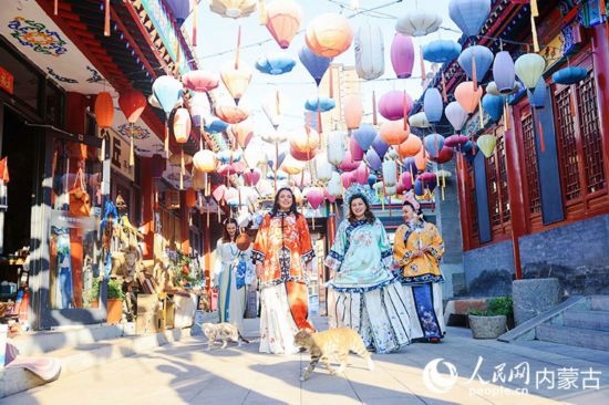 大盛魁博物館整體建筑風(fēng)格為清末民國至上世紀(jì)40年代歸化城(今呼和浩特市)街區(qū)風(fēng)貌。外媒記者“小姐姐”們現(xiàn)場(chǎng)“換裝”,體驗(yàn)各式中華傳統(tǒng)服飾。來自巴勒斯坦國家電視臺(tái)的主持人拉尼婭·哈姆達(dá)拉,換了一身鮮艷的橘色服飾,行走園中,宛若“穿越”時(shí)光。