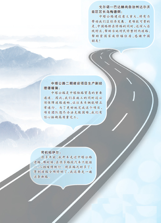 目前,中塔公路二期建設項目已完成全線60%左右的路面攤鋪工作,極大地改善了當?shù)赝ㄐ袪顩r。卡車司機穆罕默德經(jīng)常跑中塔公路,特別關注項目進展。從前,這條路上山體滑坡是常事,車輛總被滯留途中,一耽誤就是好幾天?!艾F(xiàn)在路況有了很大改善,路上的貨車也越來越多了?!蹦潞蹦抡f。
