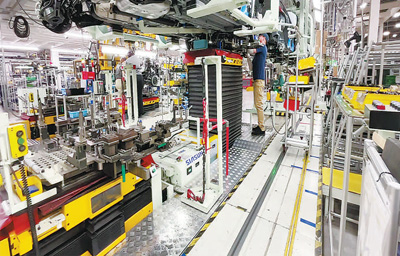 德國一家知名汽車制造商車間內(nèi),一個個明黃色的超大“行李箱”正在奔走忙碌。它們自主跟隨車身,時刻與其保持同步,并將發(fā)動機(jī)、后橋舉起,對接底盤,完成拼合……