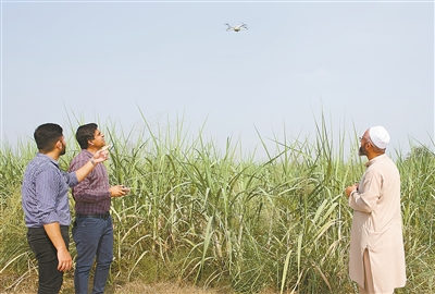 中國—巴基斯坦人工智能智慧農(nóng)業(yè)實驗室研發(fā)人員運用無人機(jī)定期巡檢畫面,通過人工智能分析,實時向農(nóng)戶反饋作物生長情況。
