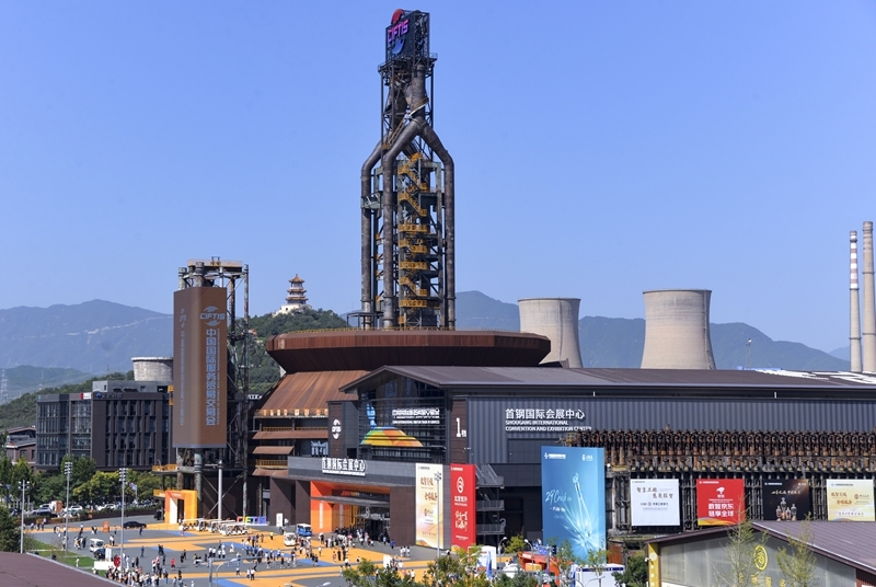 9月14日拍攝的北京首鋼園2025年服貿(mào)會(huì)展館外景。